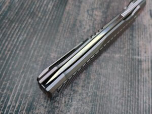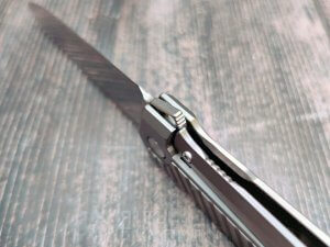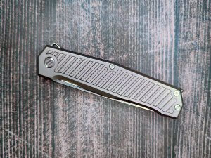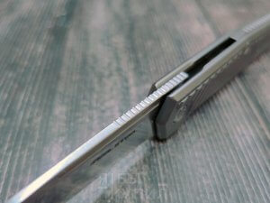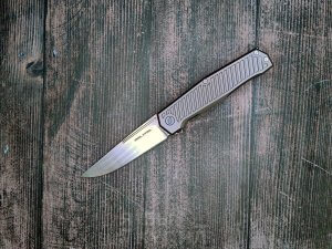 Складной EDC-нож с клинком из порошковой стали CPM S35VN (58-60 HRC) и титановой рукоятью. Замок типа Frame-lock обеспечивает надежную фиксацию, а система подшипников позволяет быстро открывать нож флиппером. Клинок Drop-point с сатинированным покрытием демонстрирует хорошие режущие качества при толщине 3.1 мм.